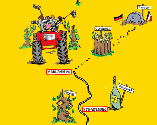 Il était une fois, la jolie route des vins d'Alsace. Derrière le décor pittoresque, le glyphosate s'attaque aux vers de terre, reines des vins et ésotérisme se côtoient et la vigne du futur bourgeonne.