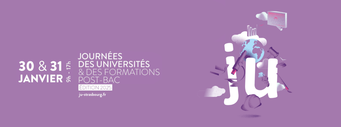 Retrouvez l'Université de Strasbourg aux Journées des universités et des formations post-bac 2025, les 30 et 31 janvier au Parc des expositions du Wacken à Strasbourg. Vous êtes lycéen ? Des enseignants, des étudiants et des conseillers d’orientation seront à votre disposition pour répondre à toutes vos questions sur les formations de l'Université de Strasbourg.