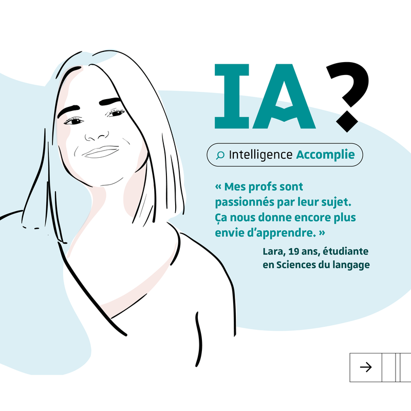 « Mes profs sont passionnés par leur sujet. Ça nous donne encore plus envie d’apprendre. » Outre l'enthousiasme de ses enseignants, Lara, 19 ans, étudiante en Sciences du langage, bénéficie à l'Université de Strasbourg d'un cadre et de conditions d’études propices à sa réussite et son épanouissement personnel. IA comme Intelligence Accomplie.