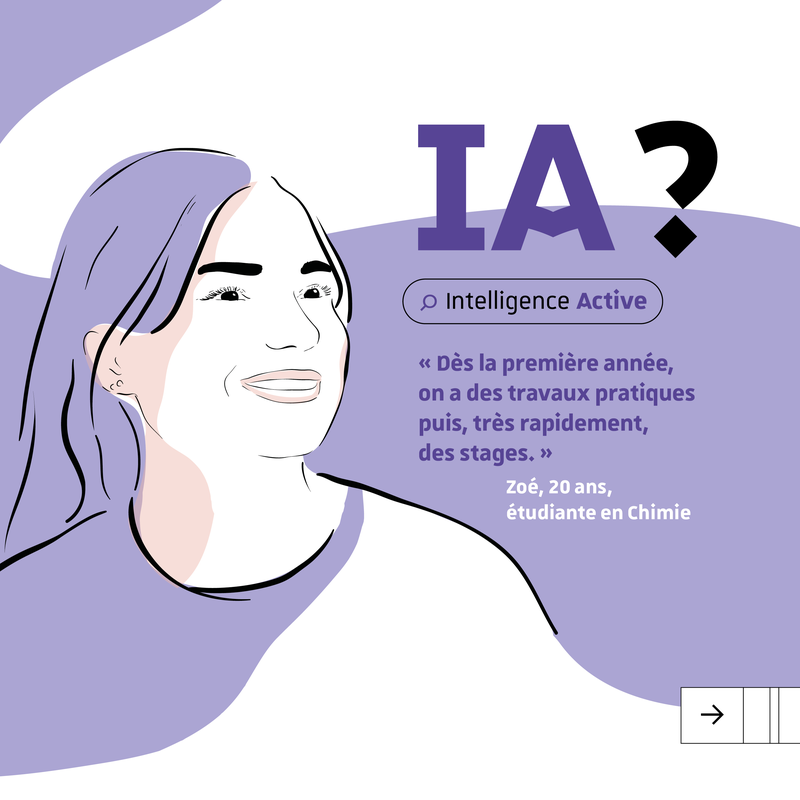 « Dès la première année, on a des travaux pratiques puis, très rapidement, des stages ». Comme Zoé, étudiante en chimie, tous les étudiants bénéficient de dispositifs pour préparer au mieux leur future insertion professionnelle. IA comme Intelligence Active.