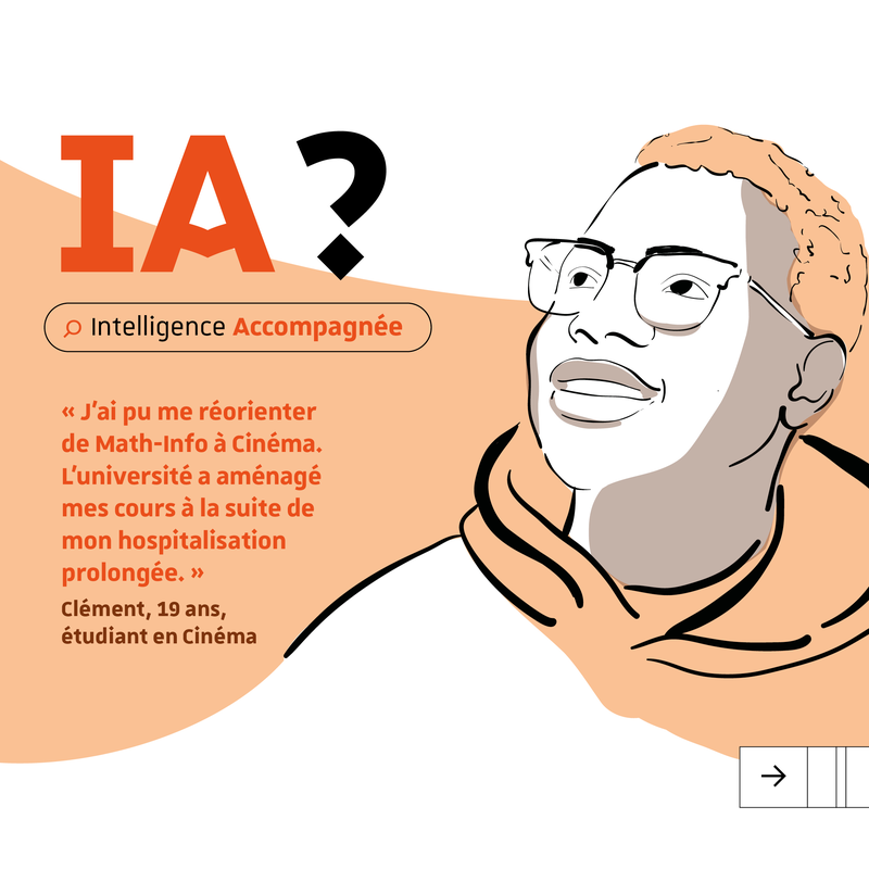 « J'ai pu me réorienter de Math-Info à Cinéma. L'université a aménagé mes cours à la suite de mon hospitalisation prolongée ». Comme Clément, à l'Université de Strasbourg chaque étudiant peut bénéficier d’un accompagnement, d'un soutien individuel pour adapter son parcours à ses aspirations, son profil ou ses besoins spécifiques. IA comme Intelligence Accompagnée