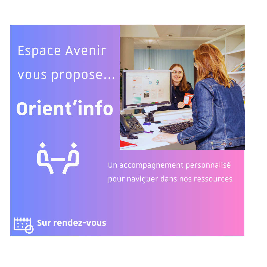 L'Espace Avenir propose un accompagnement personnalisé vendredi 6 octobre à 14h à l'Espace avenir sur le campus de l'Esplanade. Rendez-vous et en présentiel pour vous guider dans l'utilisation des ressources autour de l'orientation, du stage ou de l'emploi et les utiliser de manière efficace.