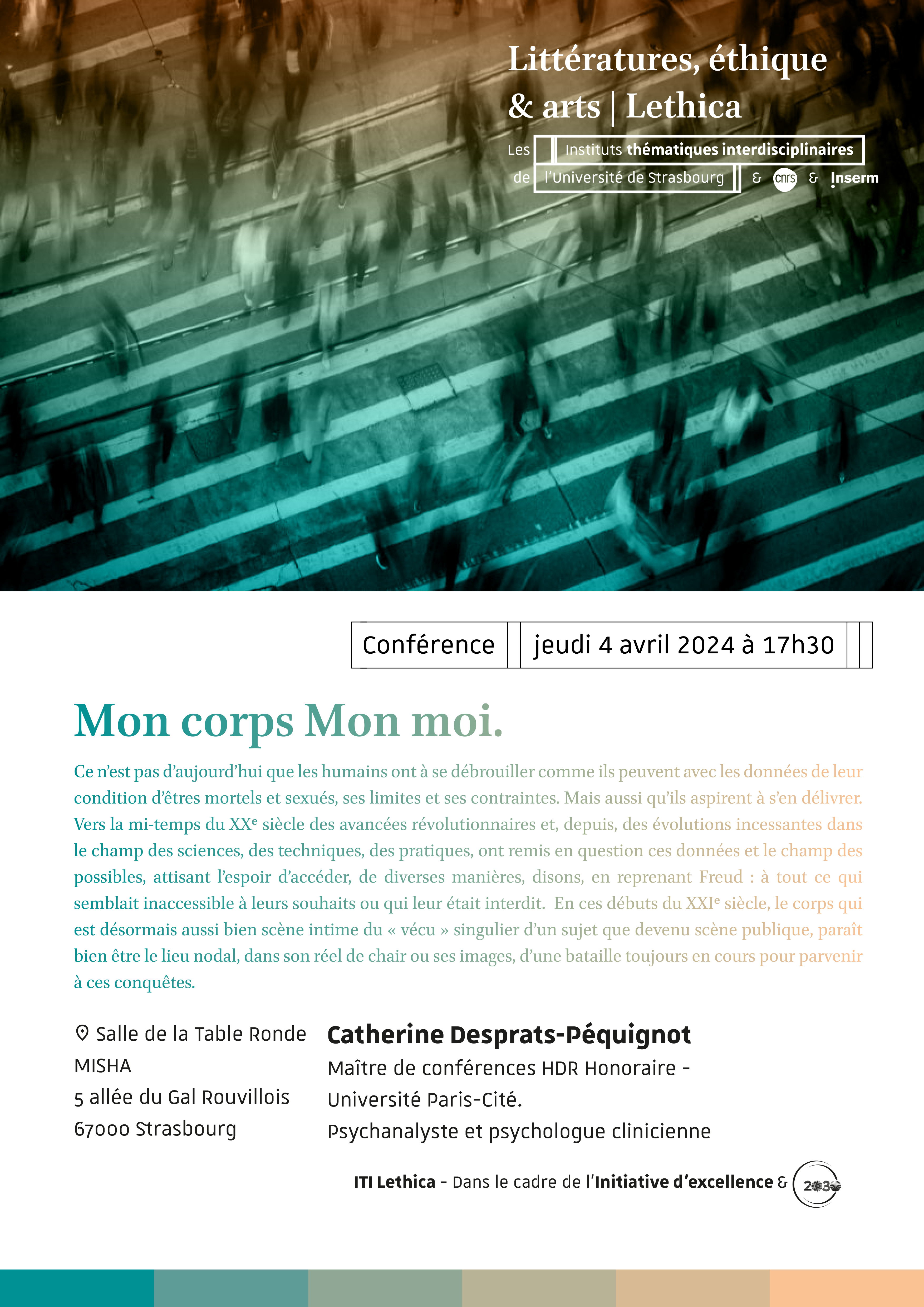 Une conférence intitulée « Mon Corps Mon Moi » aura lieu jeudi 4 avril à 17h30 à la Maison interuniversitaire des sciences de l'Homme - Alsace (Misha).